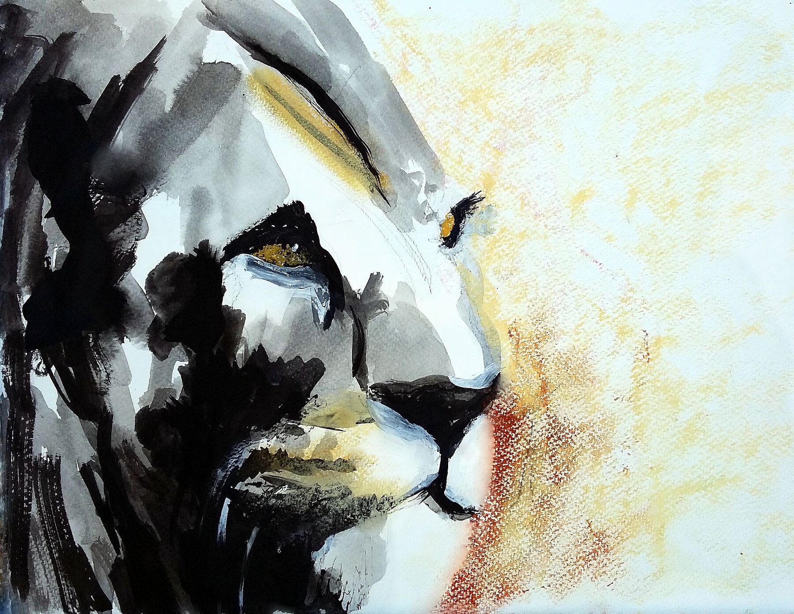 The lion is not in action, yet it holds everything: awareness, tension, and quiet authority.