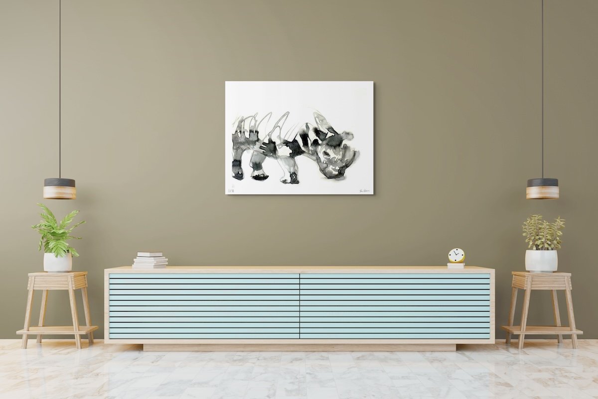Ancient Strength incarna la potenza pura e senza tempo del rinoceronte, un animale antico quanto la Terra stessa. Con tratti d’inchiostro decisi e forme organiche, l’opera trasmette resistenza, resilienza e la sacra presenza di uno dei più antichi guardiani della natura. Un’opera che evoca sia stupore che riverenza.