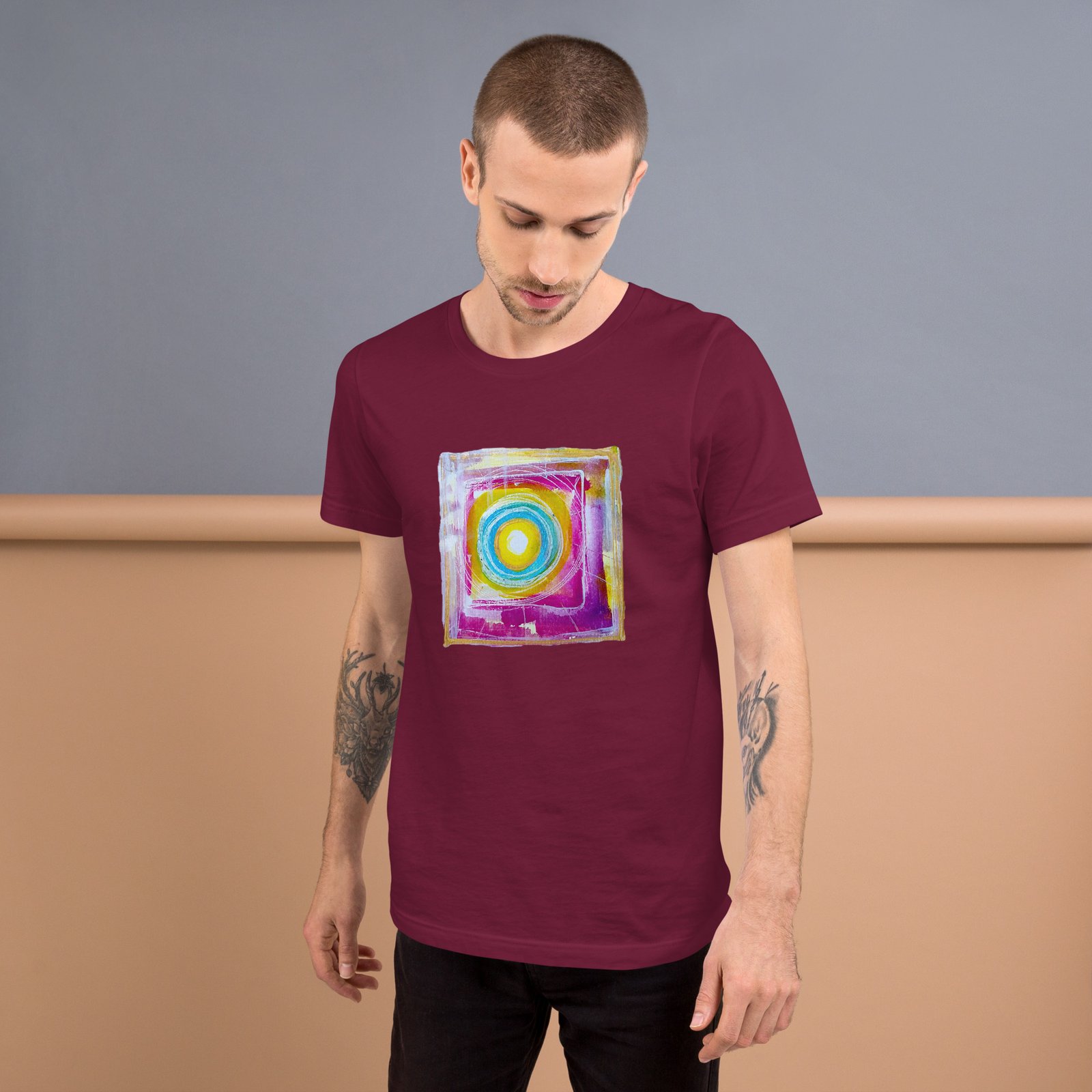 Una porta vibrante verso dimensioni infinite, Cosmic Portal trasforma l’arte astratta in un’audace dichiarazione da indossare. I cerchi concentrici in tonalità vivaci evocano l’idea di varcare le soglie: dal visibile all’invisibile, dal quotidiano al cosmico. Ogni combinazione di colori irradia energia e mistero, rendendo questa t-shirt non solo un capo d’abbigliamento, ma un talismano di espansione ed espressione di sé.