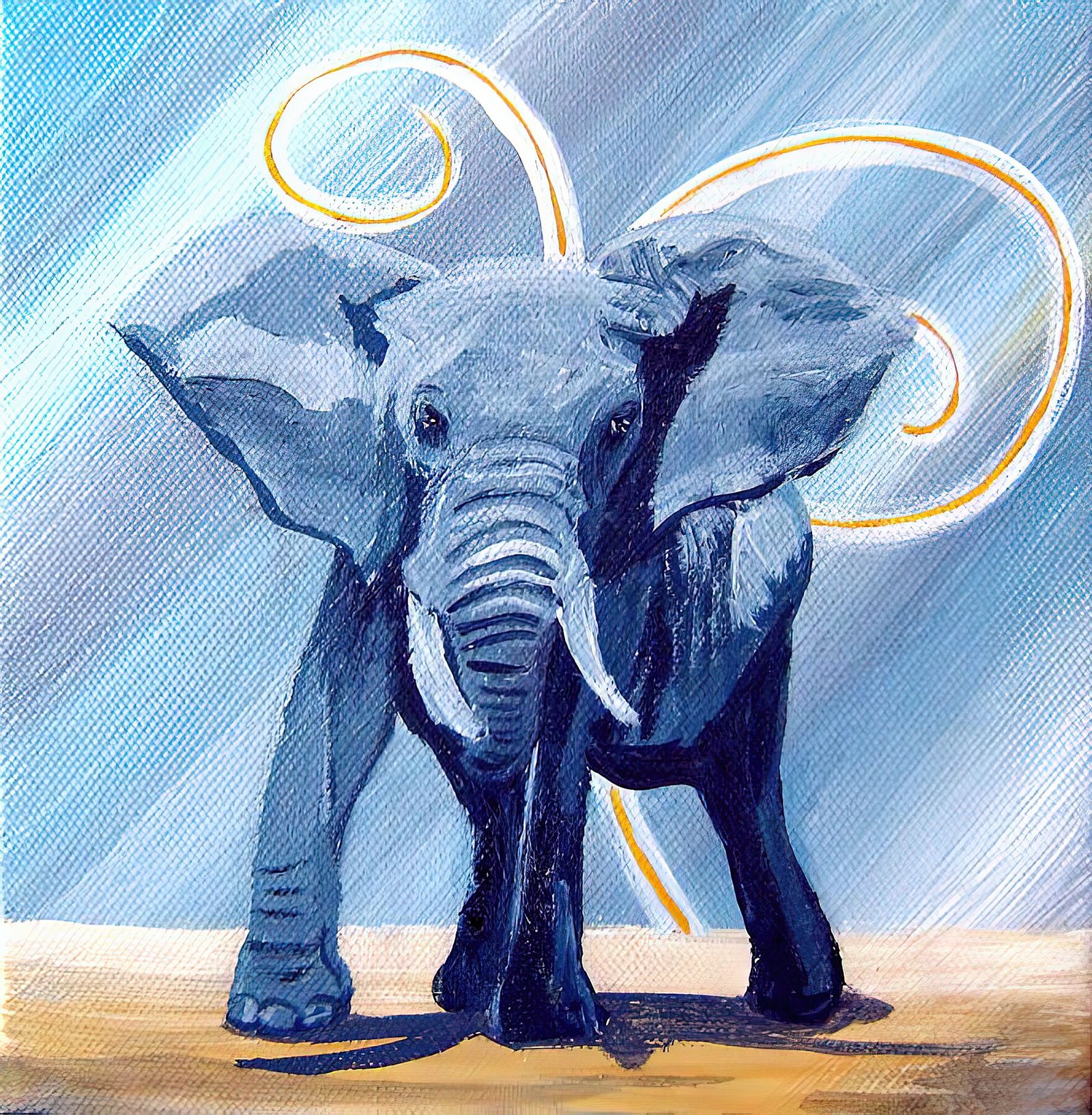 “Emerald Steps” ritrae la maestosità e la determinazione dell’elefante, simbolo senza tempo di forza, saggezza e resilienza. Le spirali dorate si innalzano come correnti di energia, guidandone il cammino con grazia e potenza. Quest’opera d’arte trasmette un messaggio di radicamento ed espansione: ogni passo è allo stesso tempo radicato e trascendente.