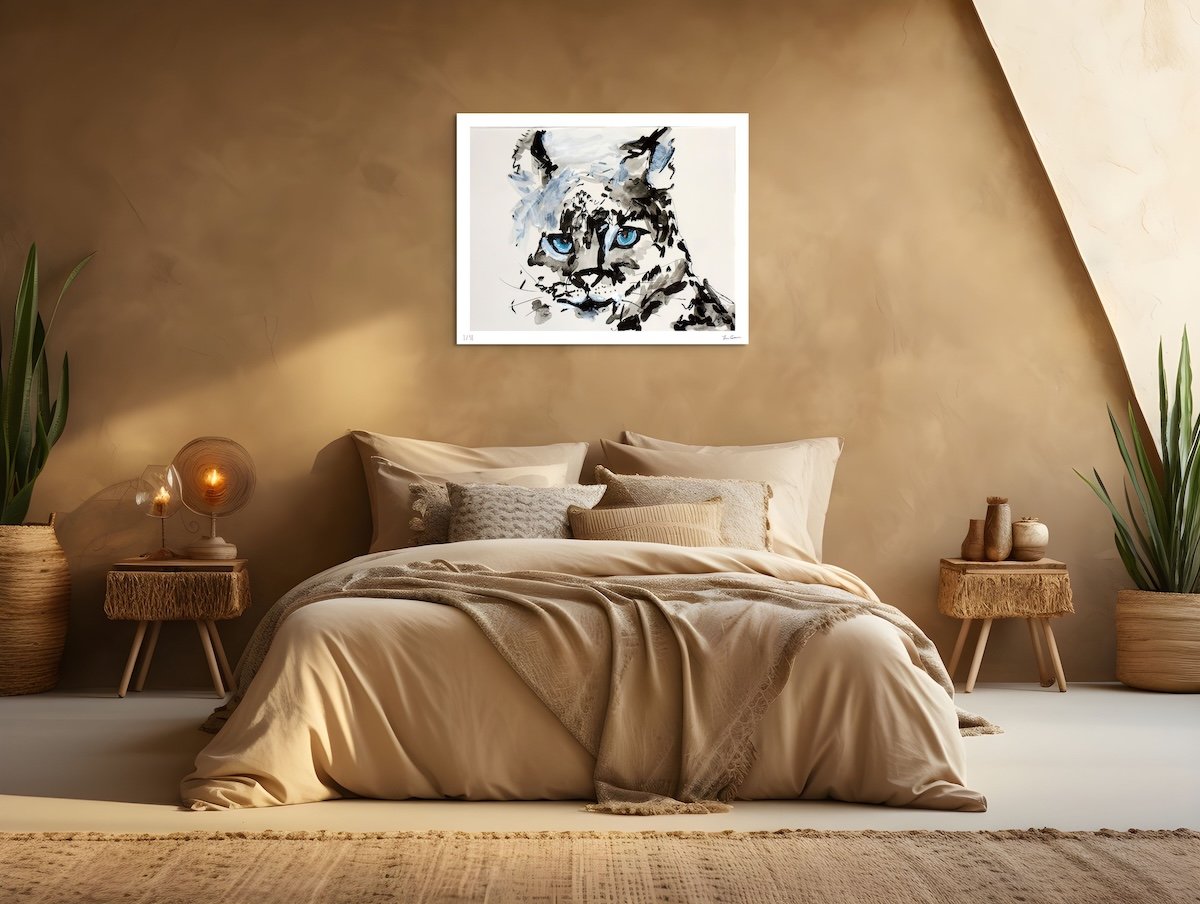 “Eyes of Winter” cattura lo sguardo penetrante di un gatto delle nevi, una creatura che incarna forza e fragilità. I ​​toni freddi e i vibranti occhi azzurri evocano un senso di mistero e resilienza, rendendo quest’opera non solo un ritratto della fauna selvatica, ma uno specchio di profondità interiore e chiarezza. Questa stampa Fine Art diventa una dichiarazione di presenza ed eleganza, infondendo a qualsiasi spazio intensità e potenza silenziosa.