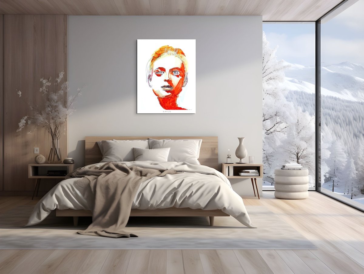 Orange Face, con il suo calore vibrante e la composizione minimale ma potente, celebra l’essenza della presenza e dell’individualità. Il contrasto tra lo sfondo bianco puro e i toni accesi del ritratto crea un’aura contemporanea e senza tempo, rendendolo un elemento centrale audace in qualsiasi spazio.