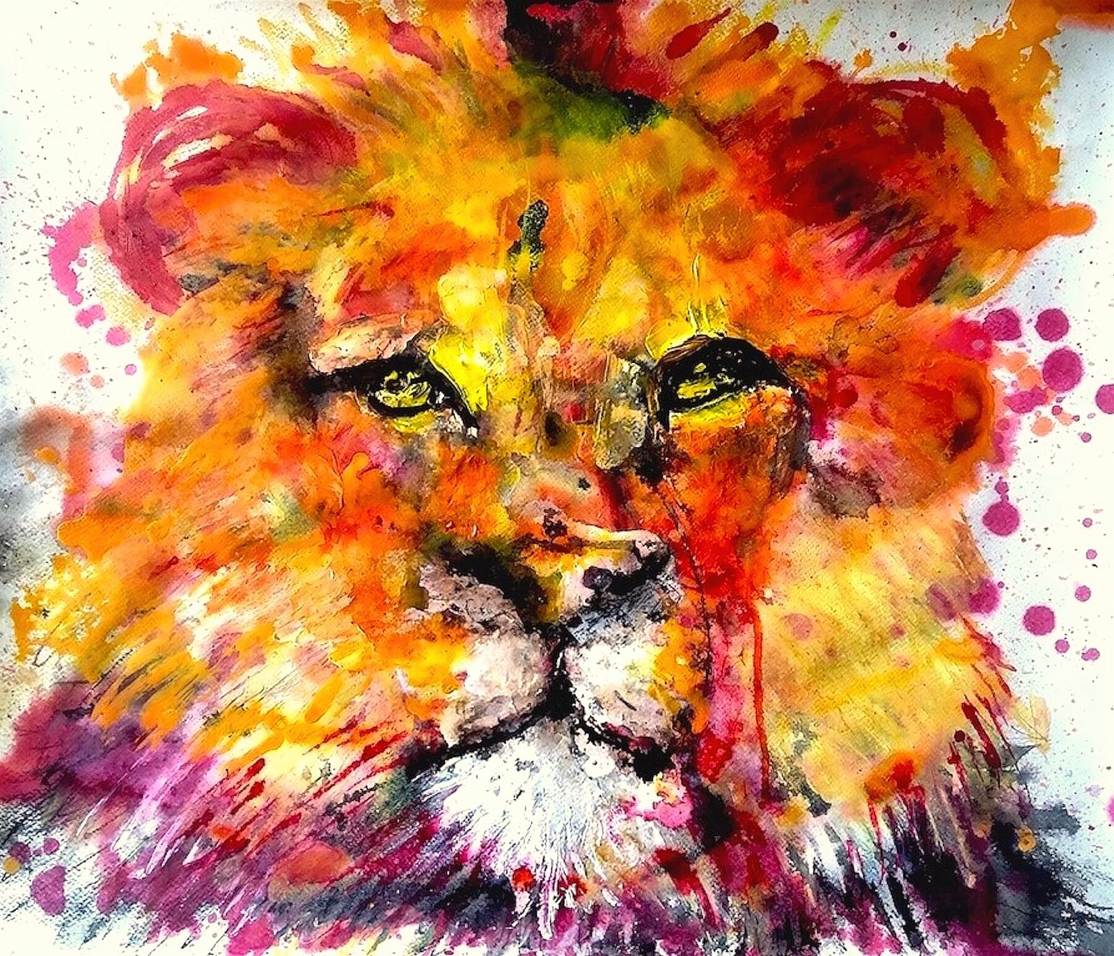 Red Lion irradia forza pura e presenza ardente. Ricco di vivaci toni rossi, arancioni e dorati, questo ritratto trasforma il leone in un simbolo di passione, coraggio e fuoco interiore. Un’opera che cattura non solo l’immagine di un leone, ma la sua essenza viva e pulsante.